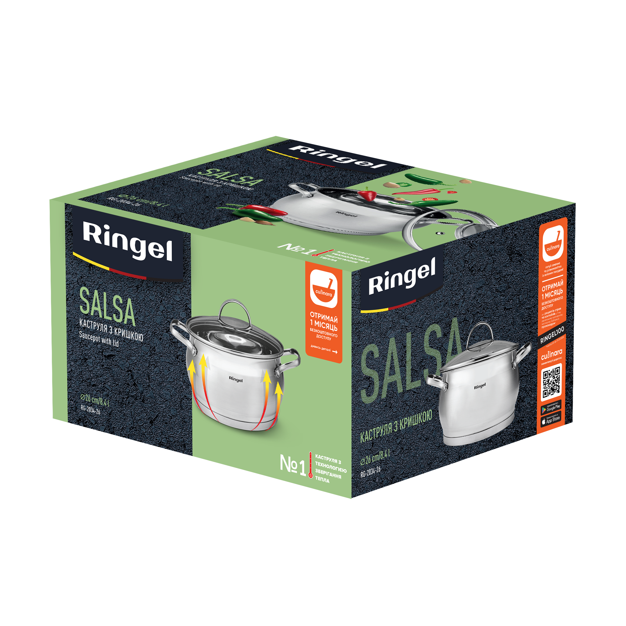 Усі каструлі RINGEL вироблені за найновітнішою технологією зберігання тепла. Потовщене капсульне дно швидко та рівномірно передає тепло страві, що дозволяє скоротити час на приготування і зберегти максимум корисних речовин у стравах, а потовщені стінки каструль RINGEL забезпечують максимально довге утримання страви теплою, без необхідності додаткового розігрівання.