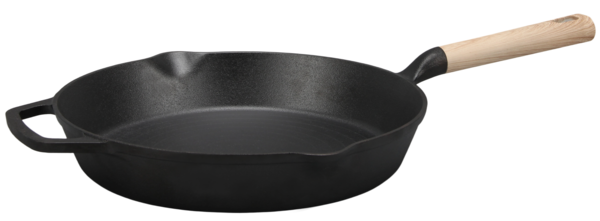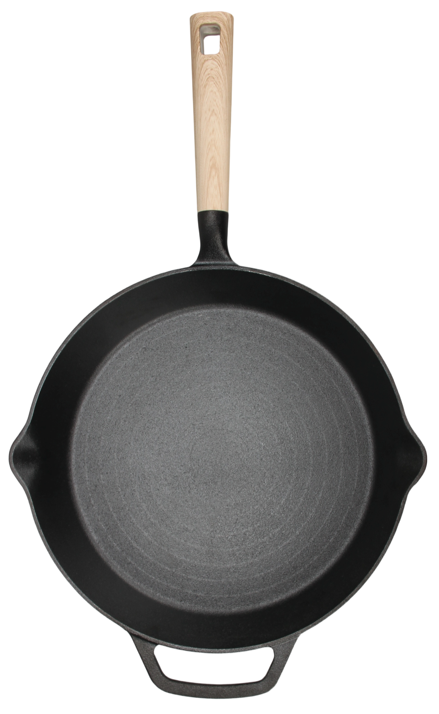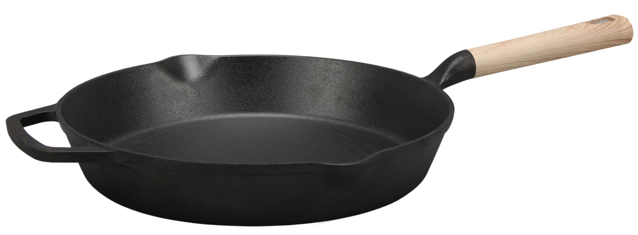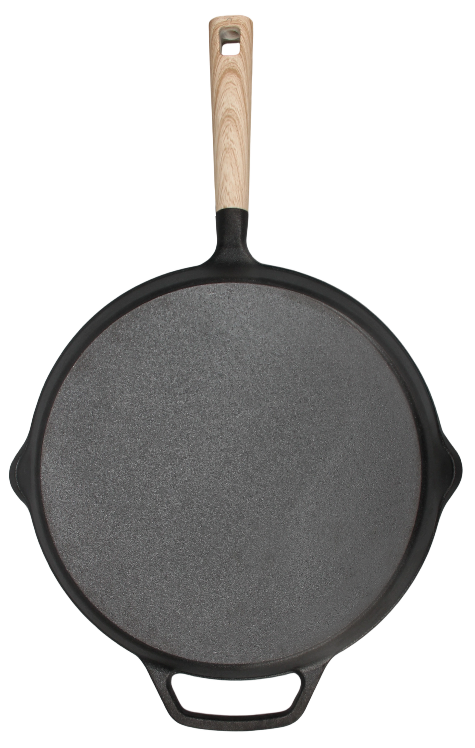 - Зовнішня та внутрішня поверхня сковороди витримана карбонізованим масляним шаром, для уникнення іржі та відтворення антипригарних властивостей