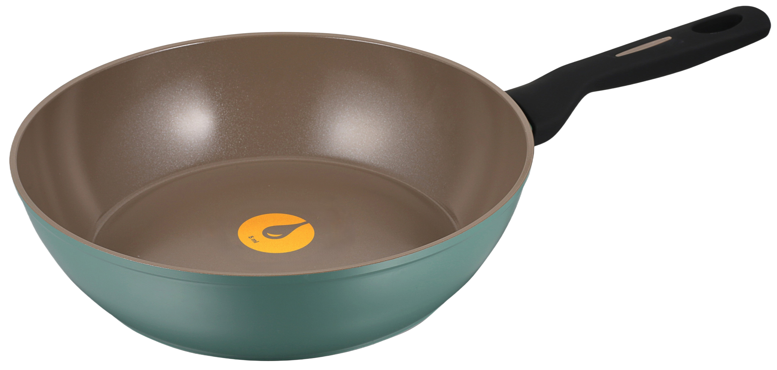 - Високоякісний кований алюміній товщиною 3 мм рівномірно розподіляє тепло по дну та швидко передає його страві