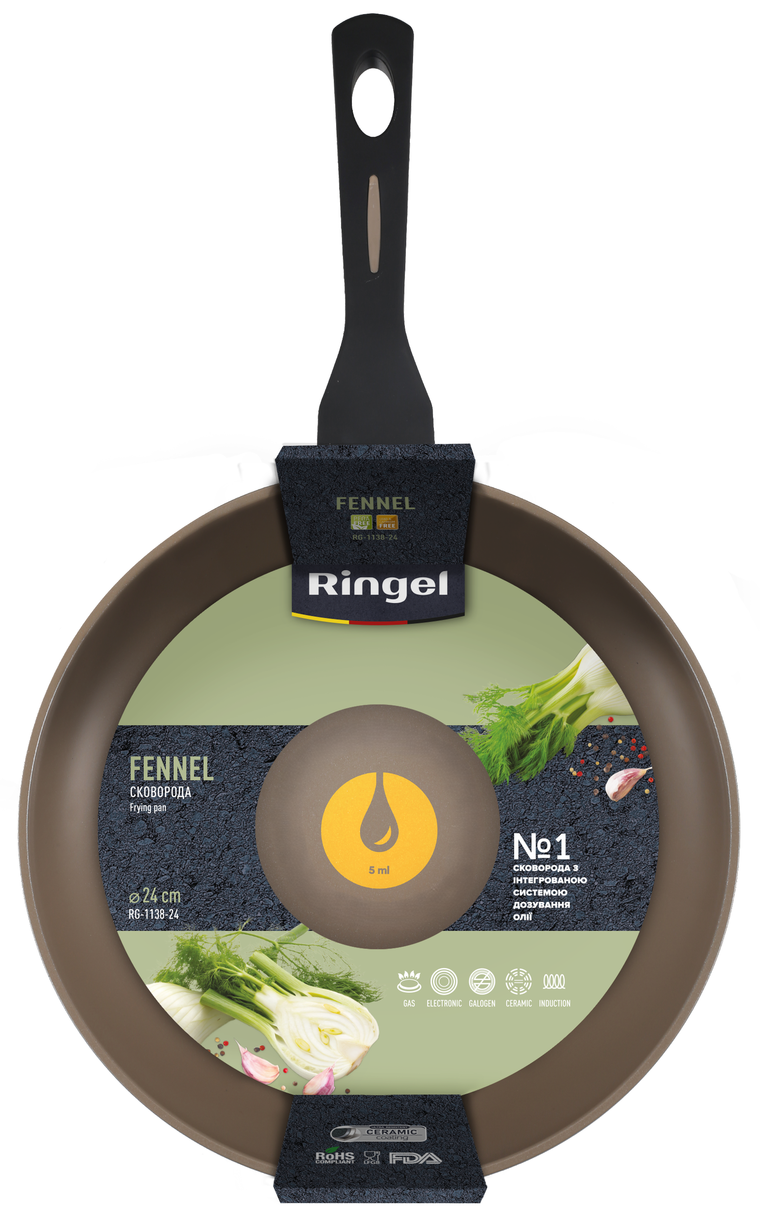 Асортимент продукції бренду RINGEL повністю задовольняє потреби в посуді та приборах найвимогливішої господині. До того ж, зовнішній вигляд усього посуду ТМ RINGEL витриманий в універсальній концепції стриманого та лаконічного дизайну, дозволяє самостійно комбінувати поєднання посуду на кожній кухні.