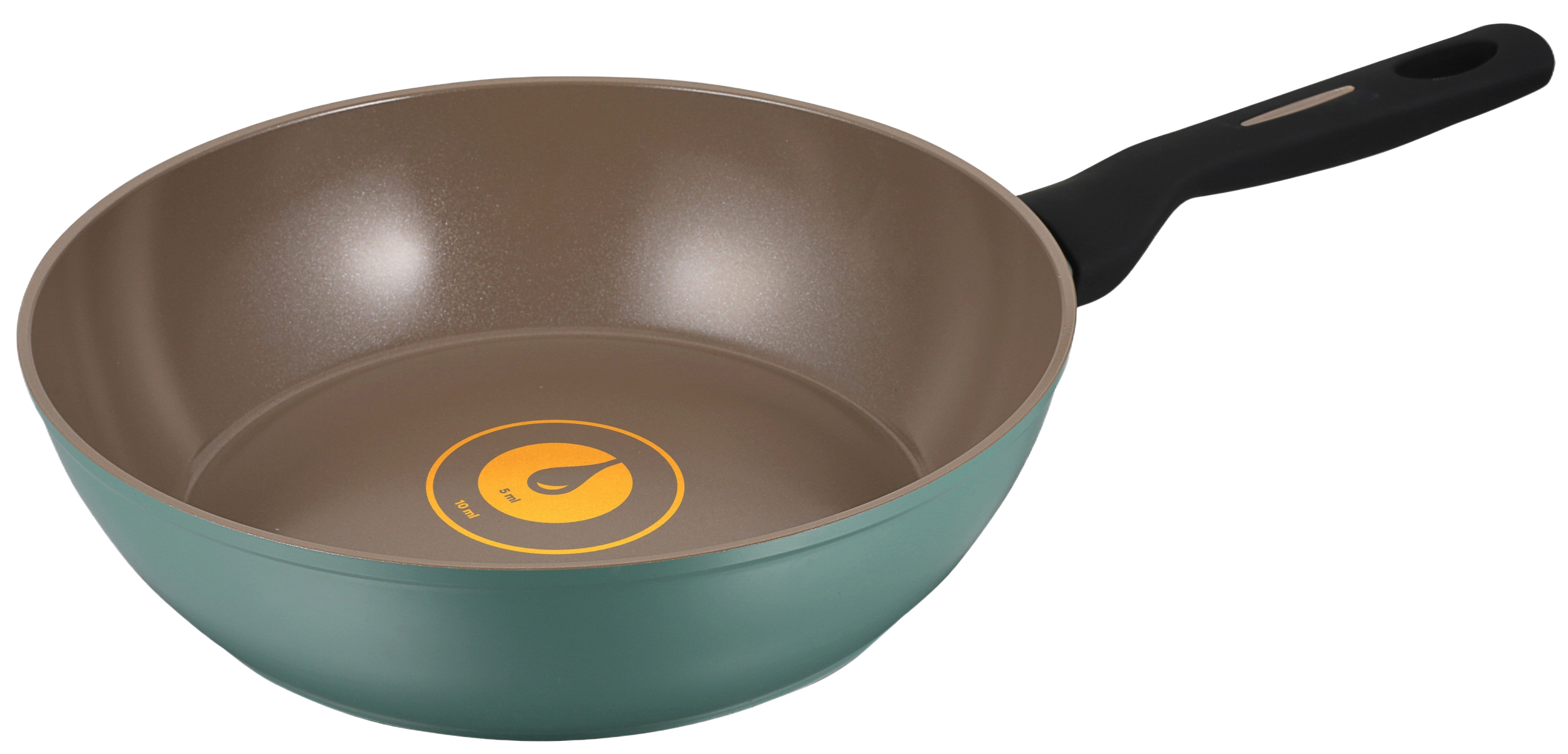 - Високоякісний кований алюміній товщиною 3 мм рівномірно розподіляє тепло по дну та швидко передає його страві