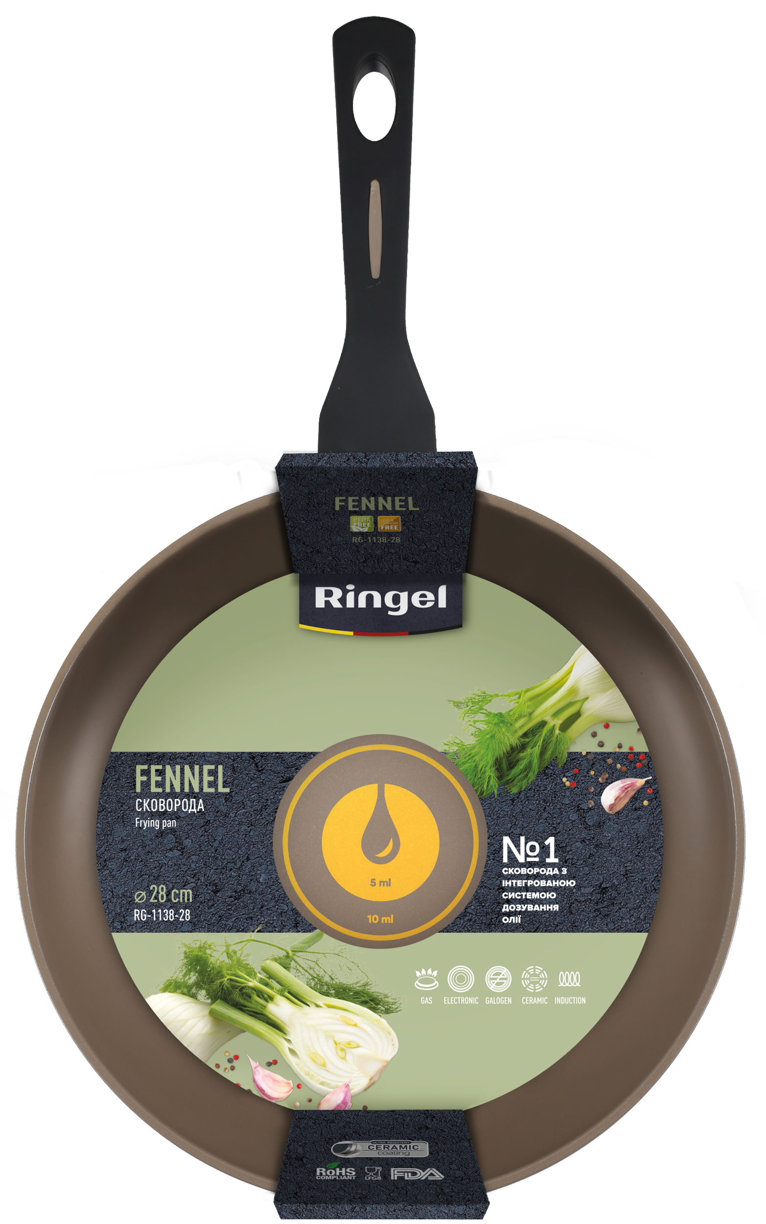Асортимент продукції бренду RINGEL повністю задовольняє потреби в посуді та приборах найвимогливішої господині. До того ж, зовнішній вигляд усього посуду ТМ RINGEL витриманий в універсальній концепції стриманого та лаконічного дизайну, дозволяє самостійно комбінувати поєднання посуду на кожній кухні.